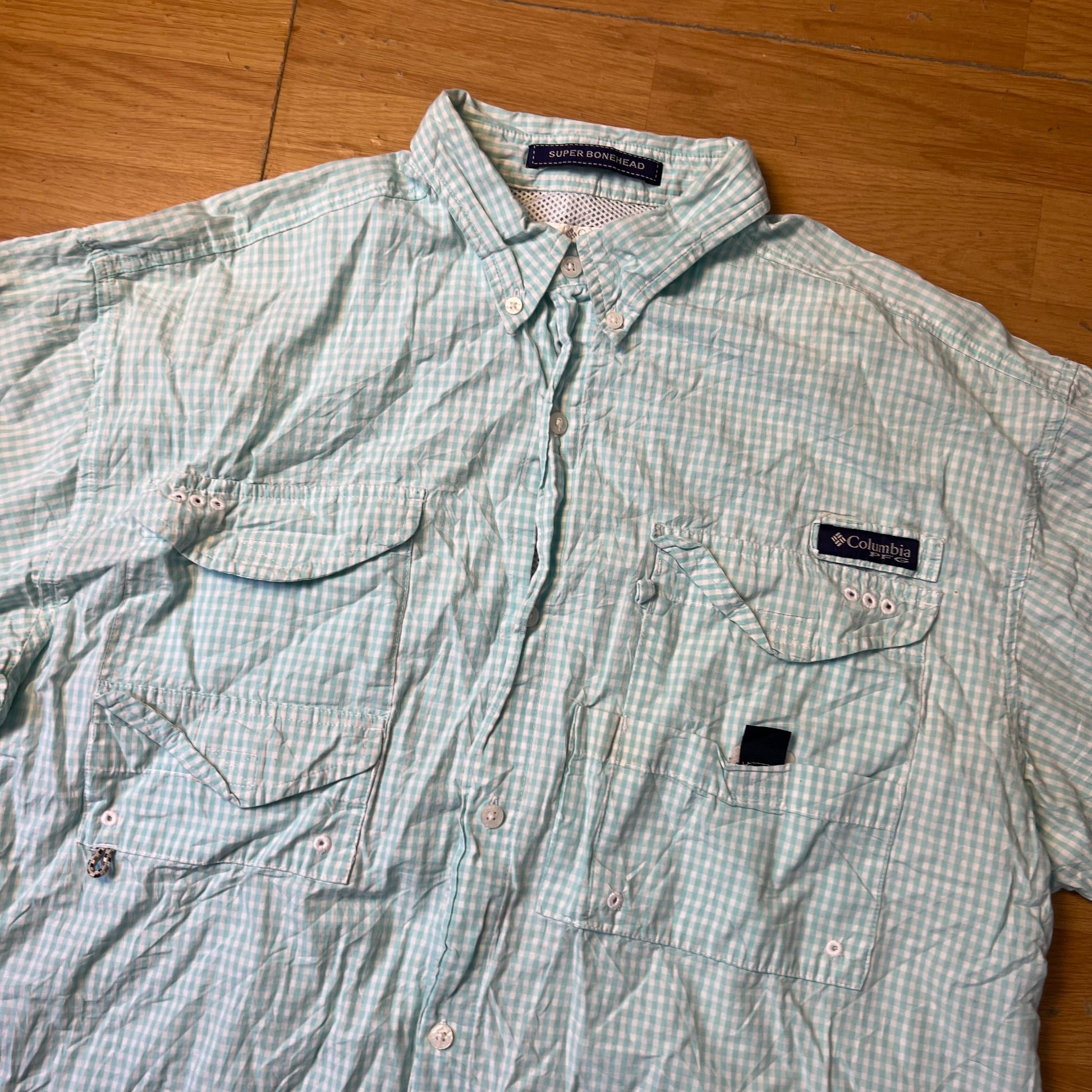 Cette chemise manches courtes Columbia à carreaux bleu et blanc offre un style classique avec une touche outdoor. Conçue en 100% coton, elle est confortable et respirante, idéale pour les activités en extérieur ou un look casual au quotidien. Les mesures sont indiquées sur les photos pour un ajustement précis.