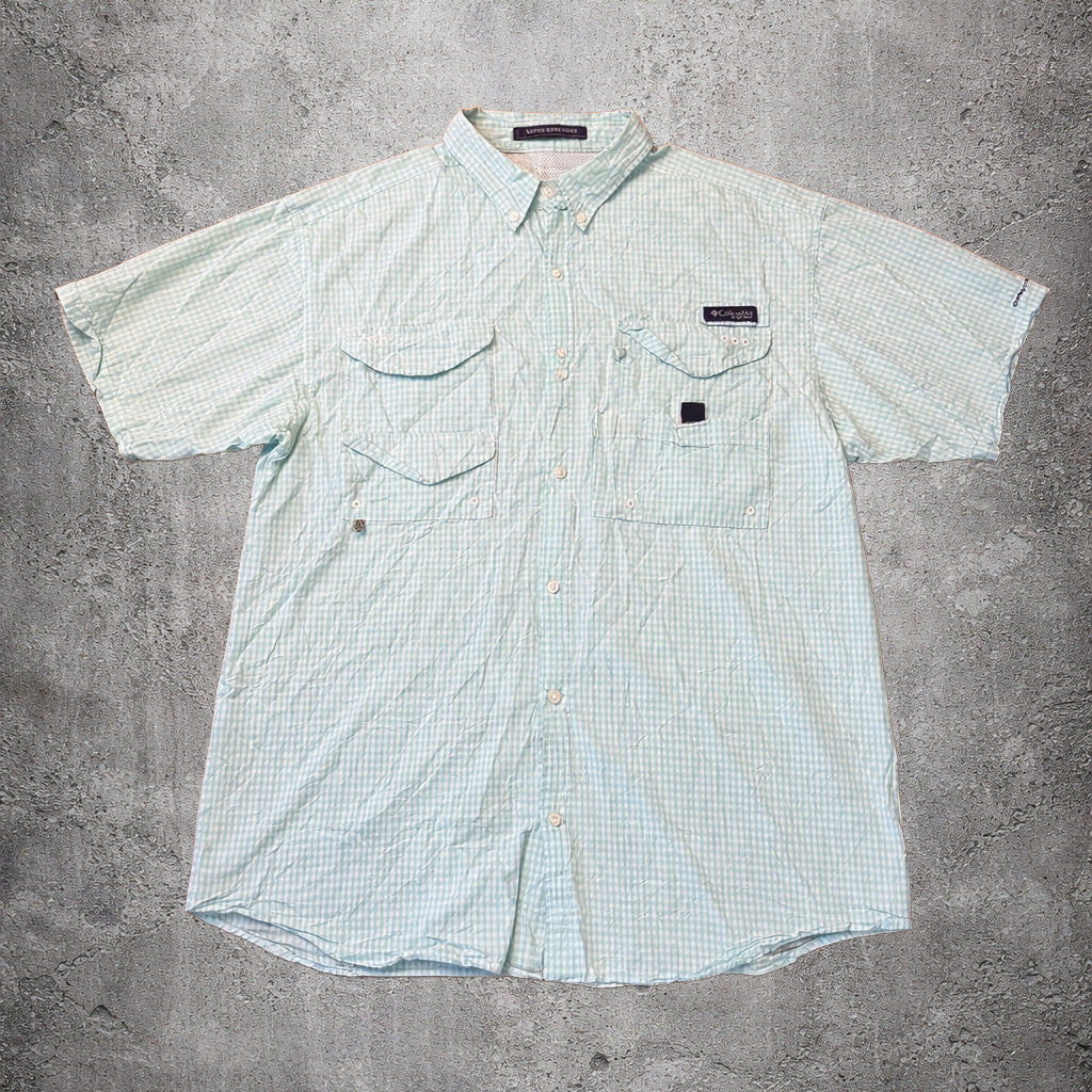 Chemise manches courtes à carreaux bleu et blanc - Columbia - Taille L