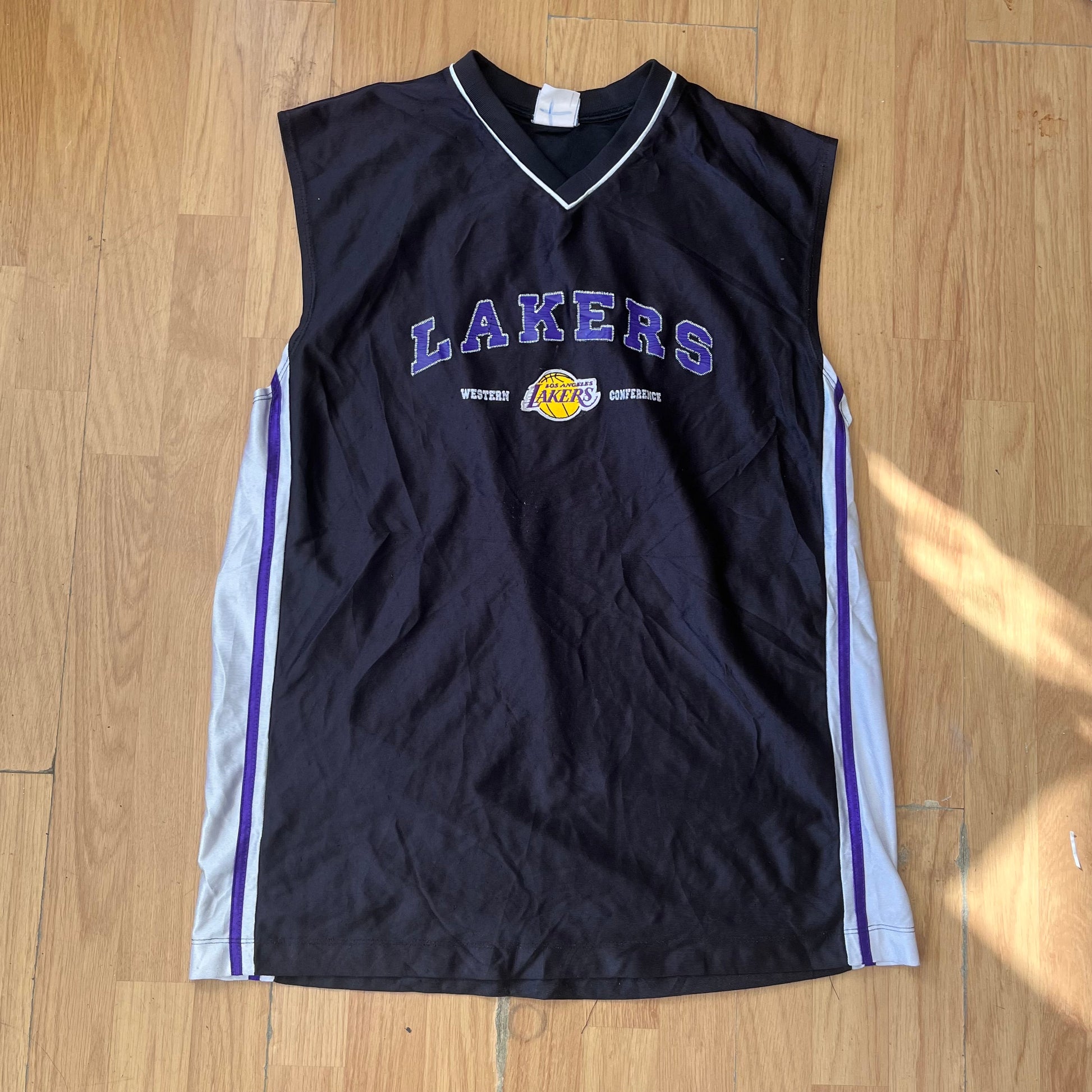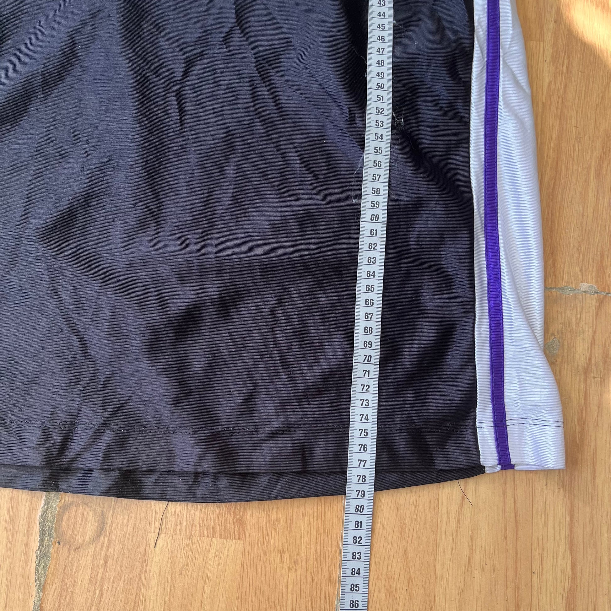 Débardeur de sport noir en polyester avec logo violet sur le devant.