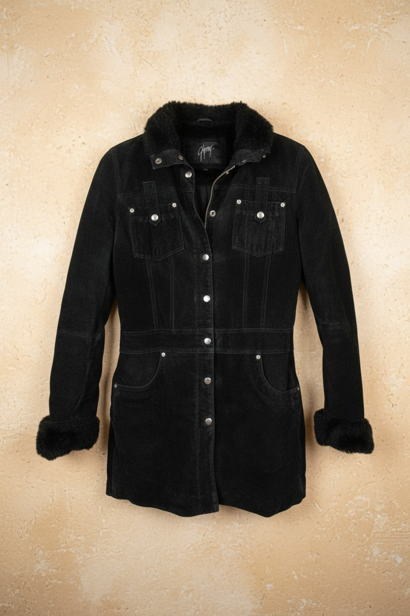 Manteau en cuir noir signé Gipsy, à la coupe structurée et au style affirmé. Ses multiples boutons pression et ses poches poitrine ajoutent un caractère unique et moderne.