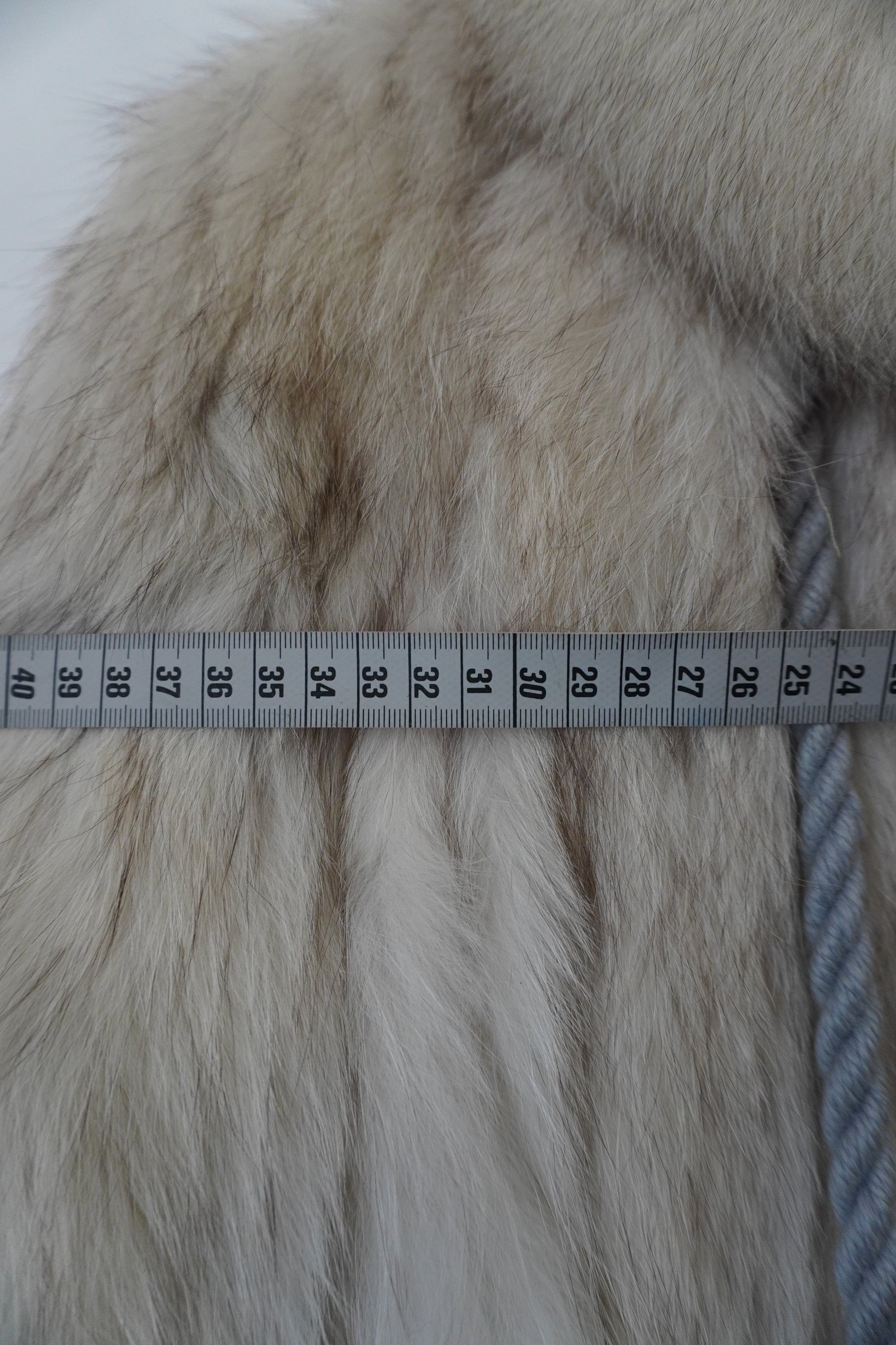 Manteau en fourrure véritable blanc avec coupe mi-longue. Une pièce élégante et chaleureuse, idéale pour un style sophistiqué.