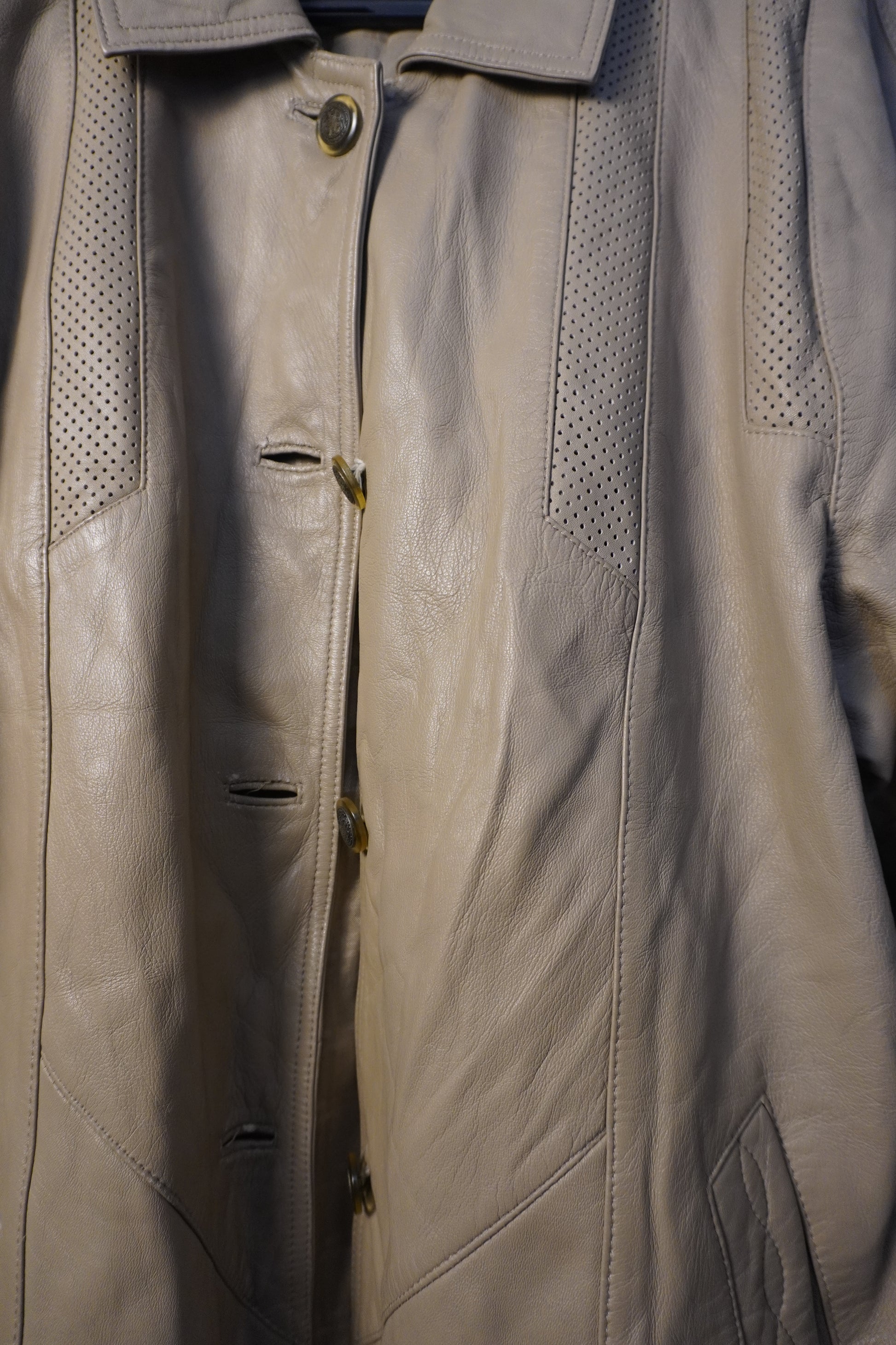 Manteau long en cuir d’agneau dans une délicate teinte beige crème. Sa coupe élégante et ses finitions soignées en font une pièce intemporelle au caractère raffiné.