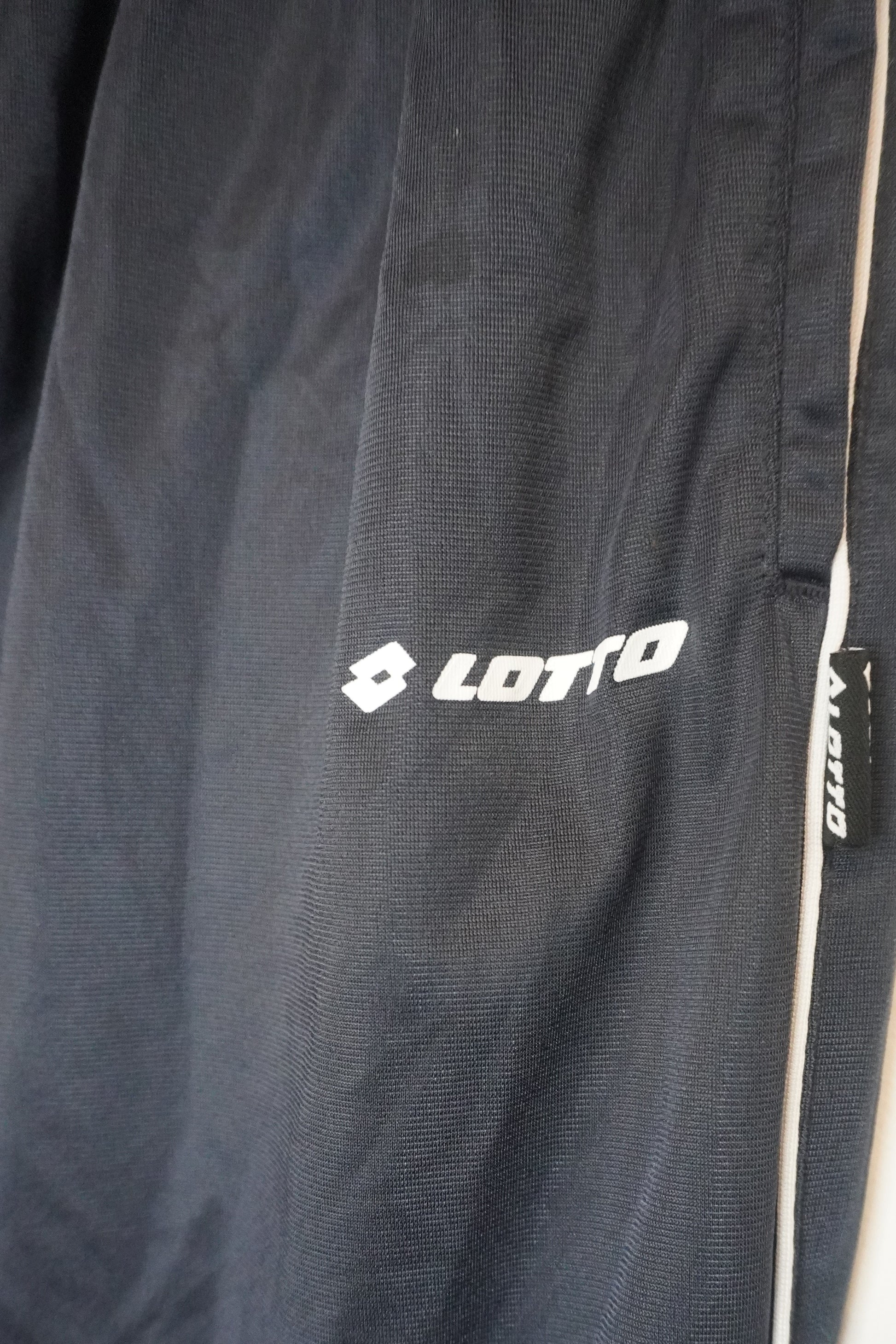 Pantalon de sport bleu foncé en polyester, coupe longueur cheville.