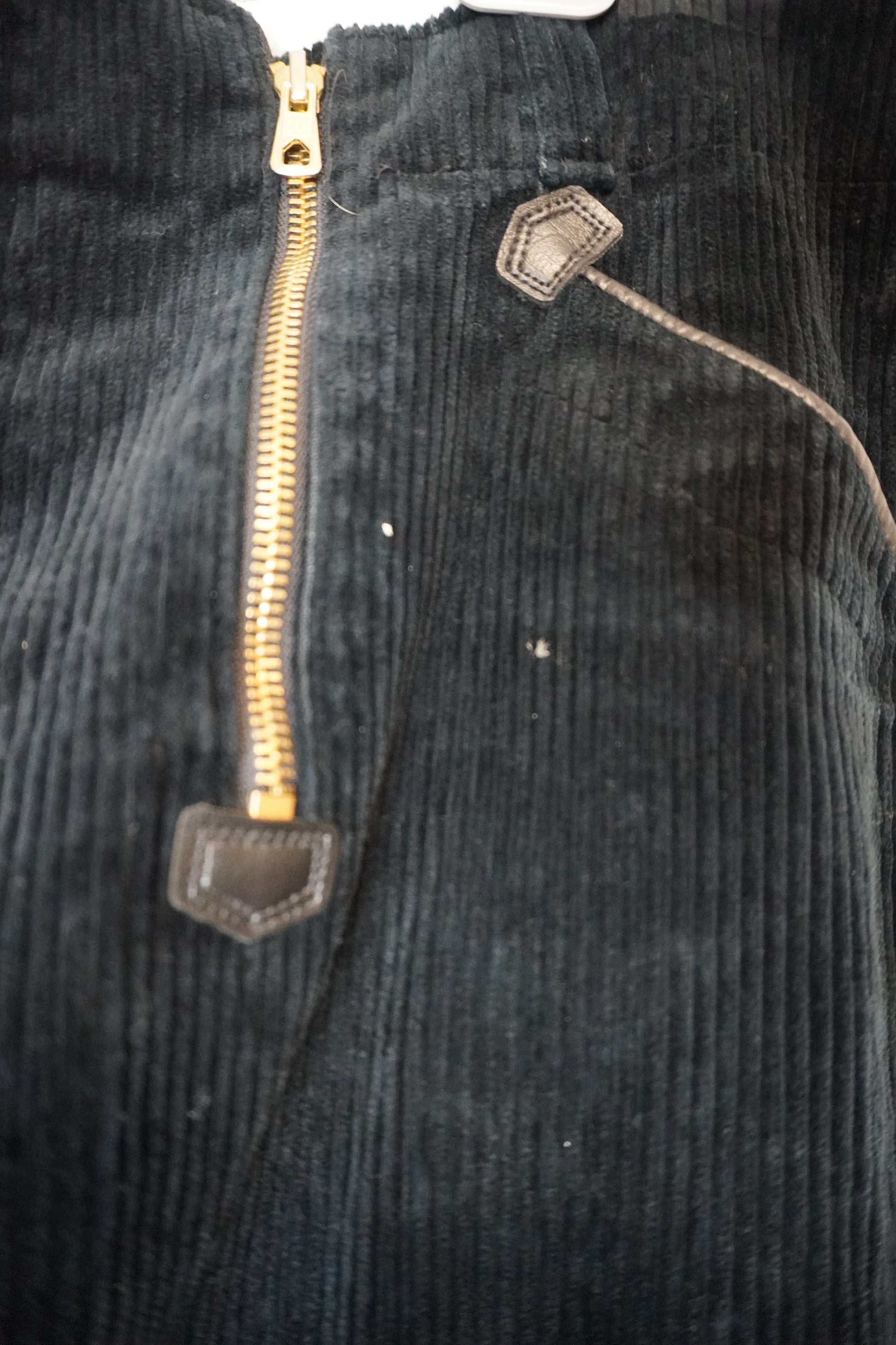 Pantalon noir en velours côtelé signé FHB, à coupe droite structurée et style classique.