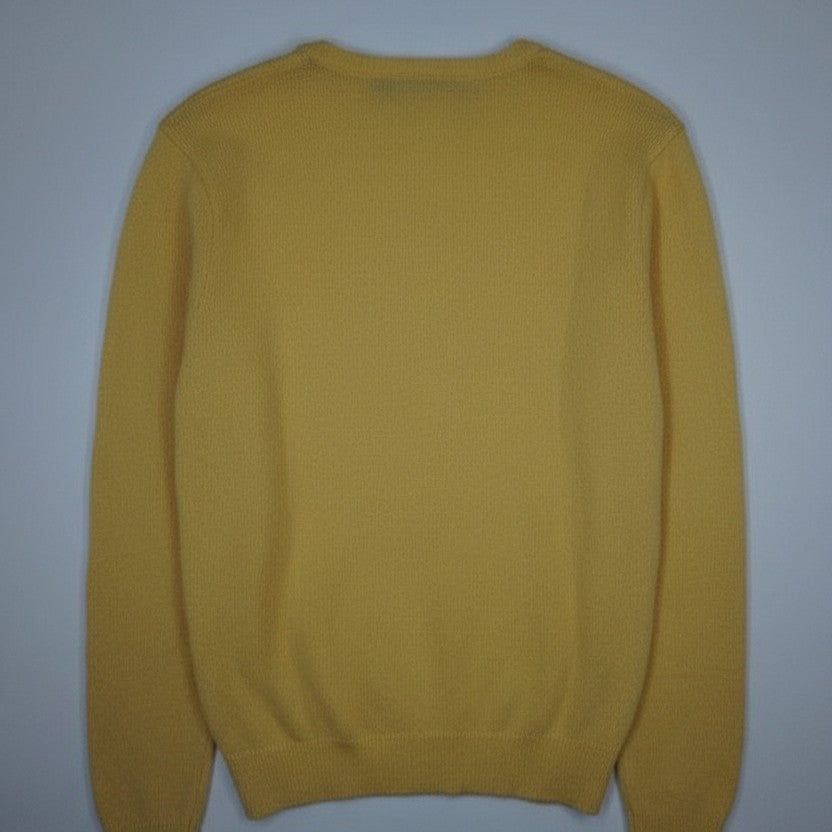 Pull jaune citron en laine d’agneau signé Ralph Lauren, lumineux et raffiné.