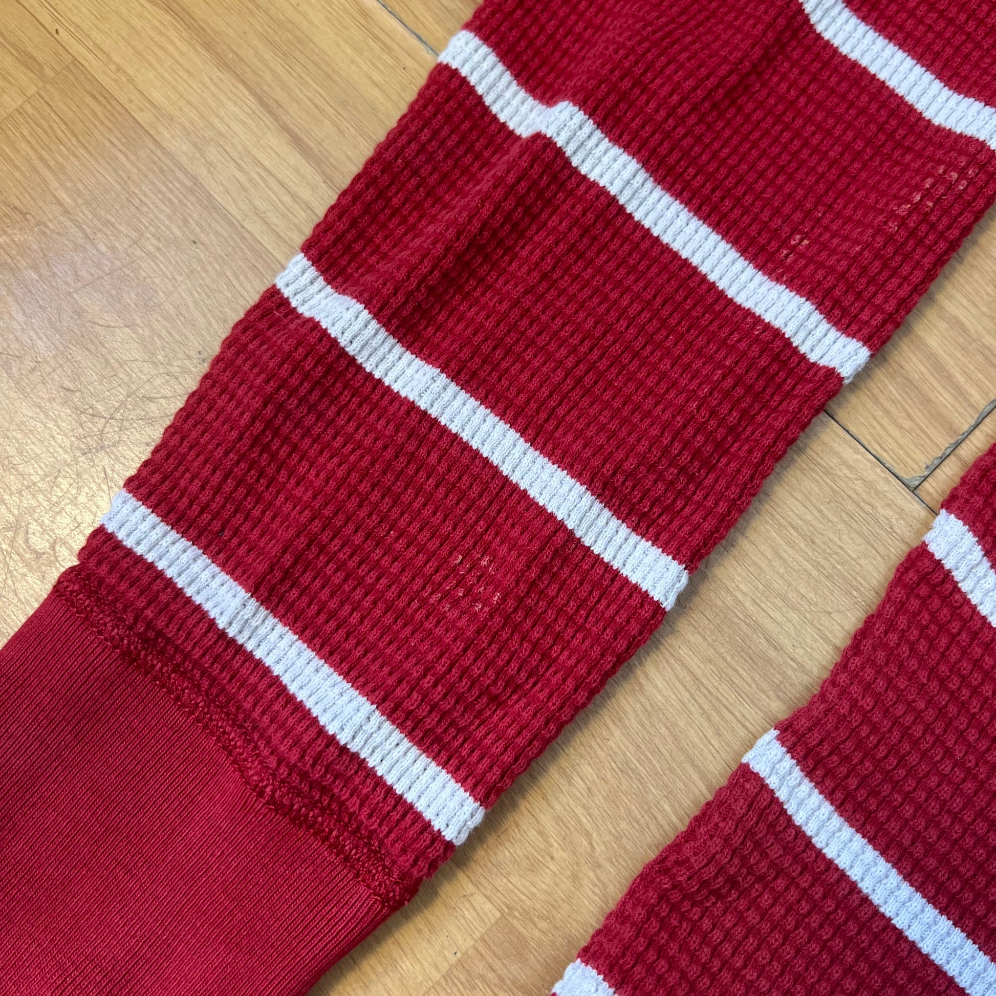 Pull American Eagle rouge avec rayures blanches, au style casual et intemporel. En taille M, il offre une coupe confortable et facile à porter au quotidien. Confectionné en 100% coton, il est doux et respirant. À noter : une petite tache lavable est présente sur la manche ; le pull pourrait bénéficier d’un lavage. Les dimensions exactes sont visibles sur les photos.