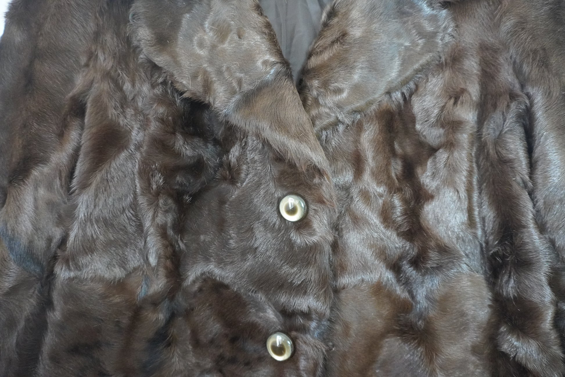 Veste en véritable fourrure marron foncé à coupe près du corps, élégante et chaleureuse.